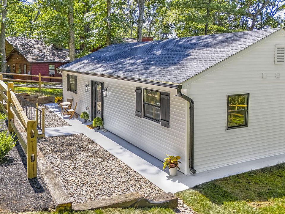 Experience life at 440 Redbud Lane, Bluemont, VA, a beautifully reimagined 2 bedroom, 1 bath rambler that offers the perfect blend of modern comfort and rustic charm being tucked away in the foothills of the peaceful community of Shenandoah Retreat in a rural setting of Clarke County. Situated on a serene lot just moments from the Shenandoah River, this 1,100 sq. ft. hideaway has been completely renewed with all new custom finishes, updated systems, and exquisite details throughout. Descend upon the property to explore a pleasant vibe with endless picturesque scenery and wildlife. Exquisite landscaping is prevalent with ample bluestone parking, classic split rail fencing , lush green boxwood shrubbery and tall fescue sod as well as carefully crafted entry through a railroad tie retainment wall down to a river rock ground cover. Step inside through an elegant front entry door into a contemporary foyer that invites you to a bright and generous layout freshly painted with Behr Confident White which flows effortlessly with warm natural light giving off aesthetic vibes mixed with a relaxing at home tone. Enjoy casually designed spaces with a mixture of a country style kitchen with adjacent eat-in dining and open living space with thoughtfully designed sitting area overseeing a comforting backyard with seasonal views galore. The kitchen location adores a timeless design with tasteful white shaker wood cabinetry with soft close features, oversized island with seating for three, elegant quartz stone countertops, new stainless steel appliances, and a stylish wallpaper backdrop. With solitude yet entertainment in mind, the cozy living room with recently extended square footage was centrally designed for a calming feel to enjoy the homes surroundings ideal for both full-time living or a weekend getaway. The home supports two generously sized bedrooms with matching closet space and a petite sized bathroom with white marble tile shower with sliding glass, matte marble flooring as well as a Doveton Vanity with black fixture accents throughout. Quietly exit the exterior slider to experience an outside porch area ideal for barbeques, peaceful evenings and gratitude while gazing over a low maintenance backyard with stoic stone retaining wall. During the autumn and winter seasons, the home displays pleasant waterviews of the Shenandoah River and mountains in the background for an amazing scenic feel. The property location is surrounded by ideally some of the best of Virginia’s wine and beer country with acclaimed breweries, wineries, and farm-to-table experiences like Bear Chase and Dirt Farm Brewery and Bluemont Vineyard just minutes away. Outdoor enthusiasts will love the homes historic charm and proximity to hiking, kayaking, and tubing along the Shenandoah with water access and private hunting permitted within the retreat. The adventure continues being close by to areas like Harpers Ferry, WV, Frederick, MD and growing Winchester, VA. and not to mention just down the road from Shenandoah University River Campus , Leesburg, VA and Dulles Airport. Whether you’re seeking a peaceful primary residence or a tranquil vacation escape, this fully updated abode offers a rare chance to own a slice of the Blue Ridge lifestyle in one of the region’s most sought-after locations. Schedule your tour and feel the love as the cool season and holidays are closing in and this home is being offered to a new owner. The opportunity is yours to grasp!