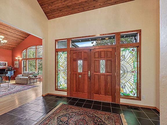 Lovely home in the hills of Jacksonville with a country setting minutes from.Downtown on City water. Open Kitchen featuring Island, Caesarstone counters, & Pantry. Natural light & many windows to enjoy the spectacular views from various rooms in the home. Beautiful Spacious Living room w/ Vaulted Ceilings. Primary Bathroom featuring jacuzzi tub, separate shower & double sinks. Detached Studio w/electricity, heaters & bar. Park-like landscaping in front yard gives an inviting appeal. Large deck in Backyard for relaxing & entertaining, mature landscaping, & 4 raised garden beds in lower fenced area & many planting areas around property w/ irrigation. Pride and love for the property shows in landscaping & gardening. Dumb waiter great for lifting groceries from garage to main floor. Indoor Laundry room w/ Counter, Sink & plenty of Cabinets for storage. RV parking along w/ storage shed. Great opportunity to own a well taken care of home & property, w/ views & privacy in Jacksonville