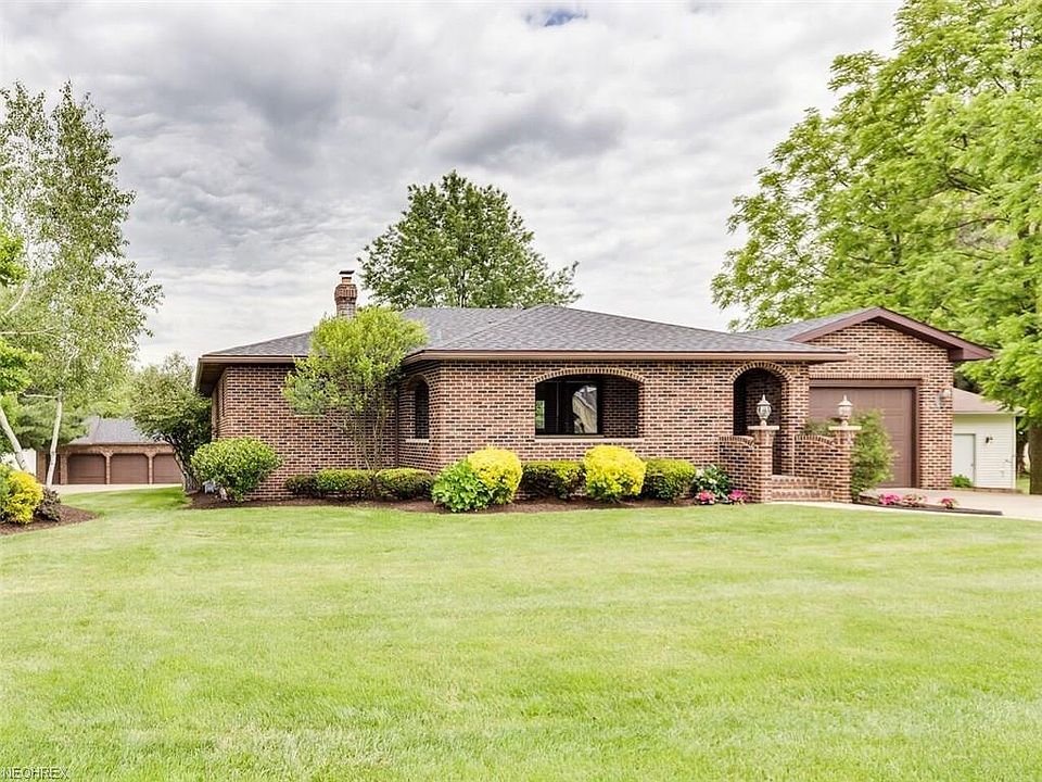 Wow!!! This Gorgeous, Custom Built, All Brick Ranch is nestled on a large lot and features over 3,500 sq ft of finished living space! Home highlights include Open floor plan,Vaulted ceilings, 4 Car garage, 4 bed, 4 bath+ Full Finished Lower level. A covered front porch w/ vaulted wood beam ceiling+ recessed lighting welcomes you in to this bright and airy home. Main floor features Large kitchen w /tumble stone back splash, all new stainless steel appliances (incl.wall oven) + storage pantry. A large vaulted Family room with brick fireplace and access to back deck. Left wing features 2 large bedrooms+ Full bath w/tile surround+ modern vanity. Master bedroom boasts Vaulted ceilings+ dual closets w/built in shelving, huge en suite w/ Jet tub, dual vanity+ glass framed shower! Right wing features a fourth bedroom with vaulted wood beam ceiling and another full Bathroom! Gleaming wood floors, recessed lighting and Central Vacuum add a finishing touch to this stunning level. The expansive lower level features over 1600 sq ft of living space featuring a half bath, rec room, laundry room, recessed lighting and a possible 5th bedroom option. Exterior of this home is completed with a large deck, New Roof(2016) and manicured landscape. Don't miss your chance to own this fully renovated home!!!!