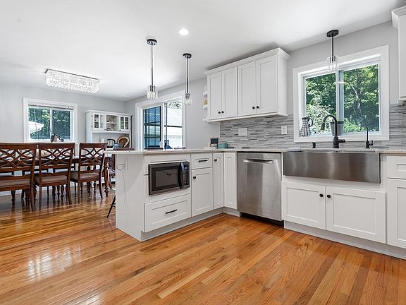 PRIME SOUTH MAIN STREET ANDOVER LOCATION! This beautiful 3-bedroom, 2.5-bath ranch combines charm, comfort, and convenience in a highly desirable setting. The open-concept living, dining, and kitchen areas feature gleaming hardwood floors and a cozy fireplace, ideal for everyday living and entertaining. The updated kitchen impresses with quartz countertops, stainless steel appliances, custom cabinetry, and direct access to a newer deck overlooking a private backyard. The partially finished lower level adds valuable living space with a family room, office, full bath, laundry area, ample storage, and walkout access to a 1-car garage. Recent updates include a new roof, furnace, windows, and central air, making this home truly move-in ready. Just minutes from Routes 125 & 93, shops, and Andover's vibrant downtown. DON'T MISS THIS OPPORTUNITY TO MAKE THIS LOVELY HOME YOURS!