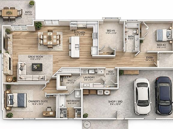 - Attached garage spaces: 3