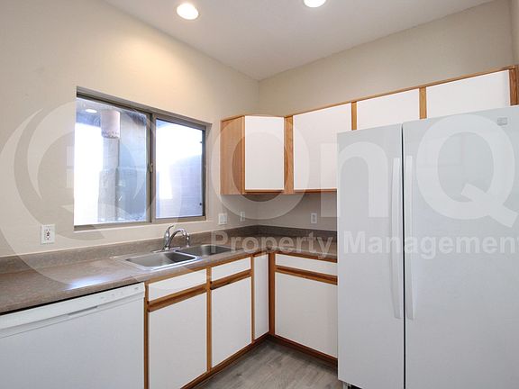 Available Now! 1,426 SQ FT! 2 bedroom, 2 bath townhouse in Mesa's Vista Santa Fe! Desirable single story with split floor plan. Charming kitchen with breakfast bar, pantry, and included appliances! Open concept living/dining with a great room and off kitchen dining space, great for entertaining. Additional front room that can be used as a formal dining or living room! Neutral interior with wood like/carpet flooring all throughout. Blinds+ceiling fans. The primary suite features bay windows and a full bath with walk-in shower, vanity sink, private toilet room, and wide walk-in closet! In unit washer/dryer. Enjoy a low maintenance yard with a cover patio and pacers. 2 car garage+corner lot. Vista Santa Fe is a well maintained gated community with a pool and clubhouse! Lovely Mesa location close to shopping/dining and easy freeway access!
