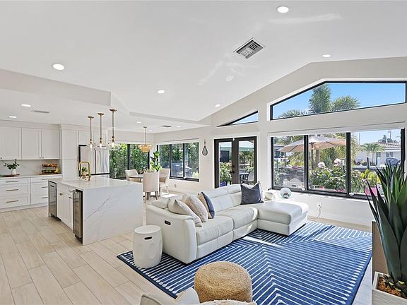 Fully remodeled waterfront estate with 70’ frontage for quick ocean access. This vibrant coastal oasis features vaulted ceilings, expansive living areas, and a chef’s kitchen with quartz waterfall island, gas appliances, wine cooler, microwave drawer, and custom cabinetry, flowing into a sunlit family room. Formal living and dining rooms complement the open design. The primary suite offers pool deck access, spa-inspired bath with freestanding tub, and custom walk-in closet. Outdoors: refinished pool with salt system, lush landscaping, and entertainment space. Additional highlights: impact windows/doors, new roof, water heater, 2-car garage, and laundry room. Ideally located less than 10 minutes to Pompano Beach.