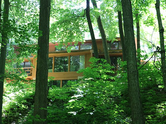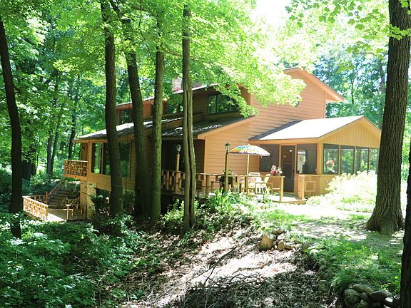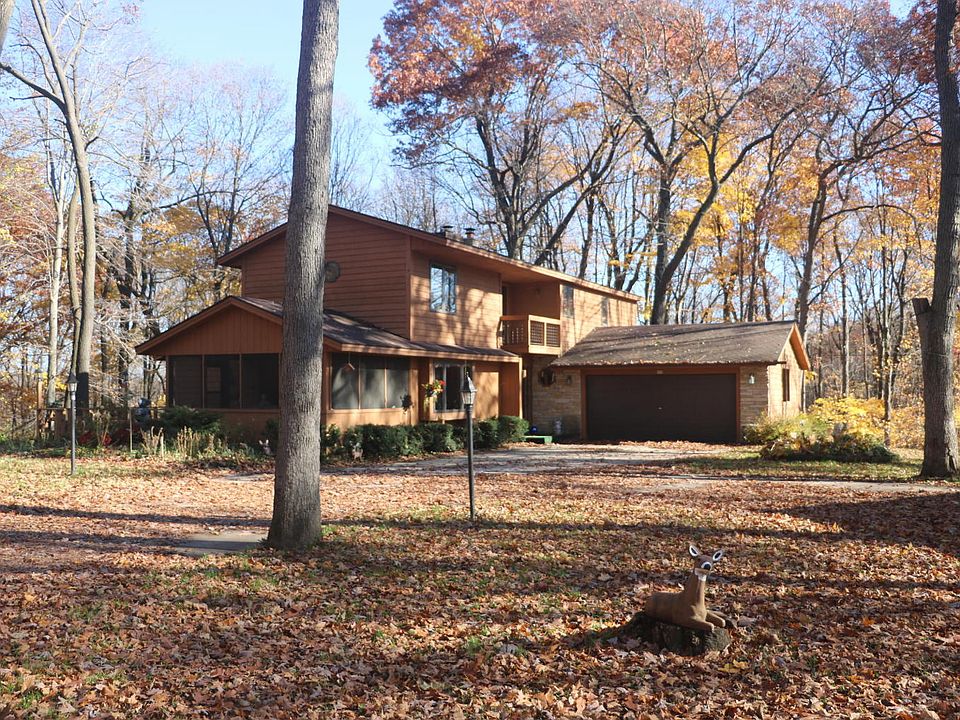 Rare opportunity to own a piece of Paradise! Custom built by original owner! Gorgeous views throughout the home of huge wooded lot with ravine full of wild life. Screened porch off eat-in kitchen; large deck off dining room; great room with Natural Fireplace. Main floor laundry & master suite with deck, walk-in closet & full bath with jetted tub. Upstairs has 3 bedrooms, full bath, & large loft with front deck. Full walk-out lower level with deck, Natural Fireplace, wet bar, & work shop. 2.5 car attached garage + 2.5 car detached garage = space to work or store toys. Newer furnace & roof. Amazing property - ready for your updates!