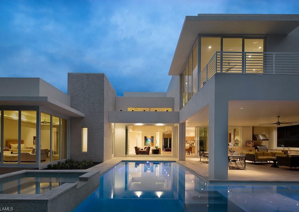 Comfortable casual living, outstanding location and exceptional entertaining space are only a few of the spectacular features of this highly crafted custom home built in 2016. Located on a quiet street in the heart of The Moorings neighborhood with convenient access to the Gulf through the private neighborhood beach park is only blocks away as is the newly opened Four Season Resort. Herscoe Hajjar Architects succeeded in creating an optimal and spacious floor plan that feels wide open and bright, combined with modern clean lines and a practical flow. Subdued wall color and limestone flooring provide an excellent backdrop for standout features such as a floating staircase, artisan created lighting fixtures, and see through fireplace. Rich Sycamore cabinetry, oversized square island, coffee station speaks to an inviting kitchen space for multiple cooks in the family. The beautifully lush landscaped lot offers useable space and privacy in both front and rear yards, and the oversized lanai overlooks an architecturally designed pool. An abundance of floor to ceiling doors throughout pocket back to enhance the front to back entertainment options. A spacious primary suite offers enticing views to the pool and spa from the tranquil lounge area, closets galore, oversized shower and elegant custom vanities. Two upstairs guest rooms have access to their own lounge with coffee/beverage bar and workout area. A 3rd oversized bonus room with private balcony is currently acting as a large office, and could be a full or part time guest room, art studio, playroom, hobby room and any other use. In addition to the abundance of storage in the laundry room, the extra deep/wide/high garage with additional built-in cabinetry surpasses any storage expectations.
