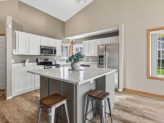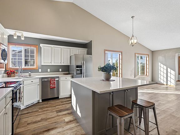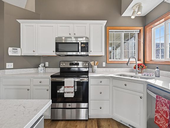 Beautiful 2 bedroom, 2 bath end unit single level living townhome with a view. Features an open floor plan with vaulted ceiling, gas fireplace, nice vinyl flooring throughout living areas plus new carpet in both bedrooms. Nicely updated kitchen with large center island, quartz counters, white cabinets and stainless appliances. Large master suite with private bath and spacious 7x7 walk-in closet. Make sure you enjoy the screened porch, patio, sunroom and beautiful views. This is single level living at its finest with a country feel of Loretto but only a short distance to everything Plymouth has to offer along with endless trails and beach at Baker Park a couple miles away. Walking distance to restaurants, playground, post office and more.