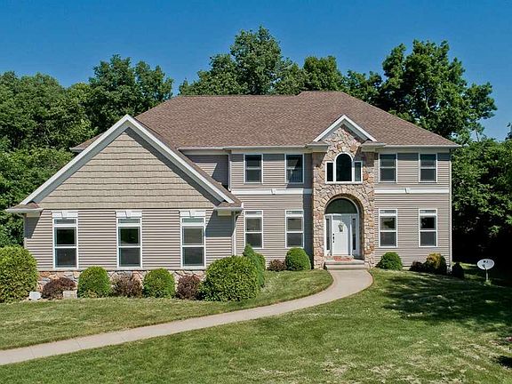 Stunning 2 story walkout home located in a highly desired neighborhood. Private wooded lot on .72 acres on a quiet cul-de-sac! Spacious home with 7 bedrooms & 5 bathrooms. You will be welcomed by the grand foyer with double entry staircase with catwalk & custom railing. Hardwood floors throughout the foyer, hallway, kitchen, daily dining & formal dining rooms. Office/den with French double doors & formal dining room just off the foyer. 2 story great room with volume ceilings, large wall of windows, & fireplace with granite surround. Cook's dream kitchen with granite countertops, tile backsplash, stainless steel appliances, in-wall oven/microwave, corner pantry, wine rack, vent fan, crown molding & daily dining area. Main level bedroom/playroom & a full bath. Drop zone with cubbies. Spacious master suite with walk-in closet, private deck, 8' ceilings, in-ceiling speakers, heated tile floors, cultured marble dual vanity, & jetted tub. Upstairs laundry room with cabinets & utility sink. Another bedroom with private bath with tile floors & 2 more bedrooms with a Jack & Jill bath complete the upper level. All bedrooms have walk-in closets. Walkout lower level room with wet bar, 2 bedrooms, a full bathroom, & an in home private office/studio! Gorgeous yard with dual level deck, patio & private views! This home has all the bells & whistles: solid core doors upstairs, stairs to basement from garage, oversized 3 stall garage, 2 water heaters, central vac, security system, whole home audio, irrigation system, geothermal system, whole house humidifier, underground pet fence, & so much more!