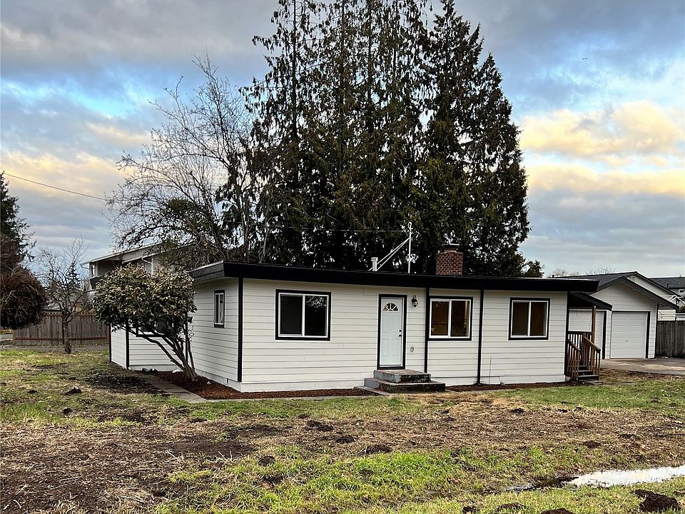 Beautifully redone! New exterior includes hardy board plank siding, new vinyl windows, exterior door and slider, new SW paint and new roof! New interior includes laminate flooring, new carpet in all bedrooms, new SS appliances to go with new kitchen with better flow! Upgraded all electrical, plumbing, HVAC ducting, all new! New high efficiency gas water heater. New bathrooms, interior doors, trim, closets, and interior paint, the list goes on and on! Enjoy relaxing in front of the fire place after a long days at work. Home layout is perfect for entertaining. 2 car detached garage has a wood stove and plenty of space for your vehicles or toys. Easy to maintain yard. Great location, easy freeway access to 167 for commuting to and from work!