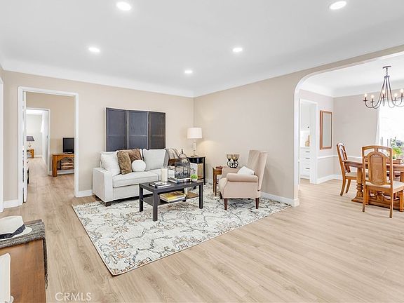 This centrally located property got the makeover it deserved featuring a long welcoming driveway which has plenty of parking besides it's two-car garage. This beautiful home is equipped with all new windows, slider and exterior paint. The open-airy floor plan features a large living room, a spacious kitchen, a formal dining area, a laundry room with extra cabinetry, beautiful new flooring throughout, new recessed lighting, custom light fixtures, new Central A/C & heating, new interior paint and new electrical. The remodeled kitchen highlights beautiful white shaker cabinets, new quartz countertops, and a farmer’s sink. The master bedroom highlights a spacious closet and a remodeled bathroom. The other two bedrooms are spacious with ample storage space as well. In addition, the washer and dryer hookups are conveniently located inside the home as well. This home is conveniently located close to your favorite shops, restaurants and major freeways.