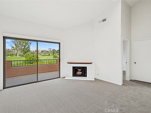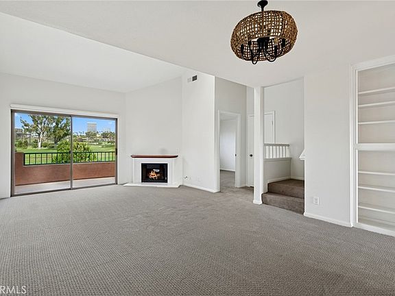 Located in the gated Villa Point community, this upper-level 2-bedroom, 2-bathroom home with a loft combines comfort, functionality, and beautiful golf course views. Filled with natural light, the open living area features new carpet and laminate flooring, a cozy fireplace, and sliding doors that open to a private balcony perfect for relaxing or entertaining. The kitchen includes tile countertops, an electric cooktop, a mini wine fridge, and a convenient breakfast bar that opens to the living space. The primary suite offers dual closets, dual sinks, and direct balcony access. Upstairs, the loft provides a versatile space for a home office or den, complete with a built-in desk and cabinetry. Additional highlights include in-unit laundry, ample storage, central A/C, and a one-car garage. Residents of Villa Point enjoy resort-style amenities, including pools, spas, and barbecue areas, all just minutes from Fashion Island, Corona del Mar, and Newport's beautiful beaches.