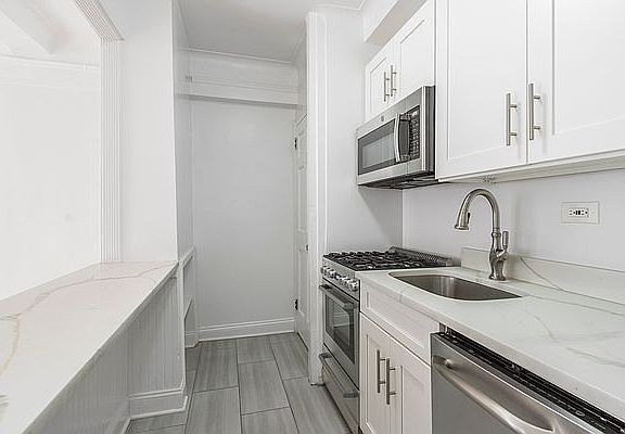 Apartment 12G is a spacious one bedroom that is filled with southern sun-light. The kitchen features stainless steel appliances, including a dishwasher and gas-range, walk-in pantry, stone counters and a pass through to the living room. The large bedroom faces south and has an en-suite renovated full bathroom. Throughout the entire apartment there are strip oak hardwood floors, crown & base moldings. 440 West 34th Street is classic prewar elevator building, featuring a full-time doorman, on-site superintendent and laundry room. Pet friendly; one cat or one dog under 35lbs (please confirm fees and restrictions). Located in the Hudson Yards neighborhood, which is convenient to the A/C/E, 1/2/3 & 7 trains. Penn Station is less than 2 blocks away. New Whole Foods, Brooklyn Fare & Ideal Market grocery stores are located within the neighborhood, as is the Hudson River Greenway, High Line and many wonderful coffee shops. .U.S. Guarantors & "The Guarantors" Accepted
