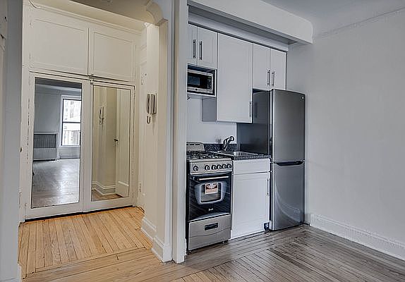 RENT STABILIZED LEASE Wonderful South facing studio! The kitchen has been renovated with stainless steel appliances and white shaker cabinetry. There are refinished oak hardwood floors throughout, three (3) closets, one of which is a walk-in. Heat & water included 440 West 34th Street is classic prewar elevator building, featuring a full-time doorman, on-site superintendent and laundry room. Pet friendly (one cat or one dog 35lbs. please confirm monthly pet fee). Located in the Hudson Yards neighborhood, which is convenient to the A/C/E, 1/2/3 & 7 trains. Penn Station is less than 2 blocks away. Whole Foods, Hudson Yard Mall, Brooklyn Fare & Ideal Market grocery store are located within the neighborhood, as is the Hudson River Greenway, High Line and many wonderful coffee shops and restaurants. U.S. Guarantors Accepted. No third party guarantor services.