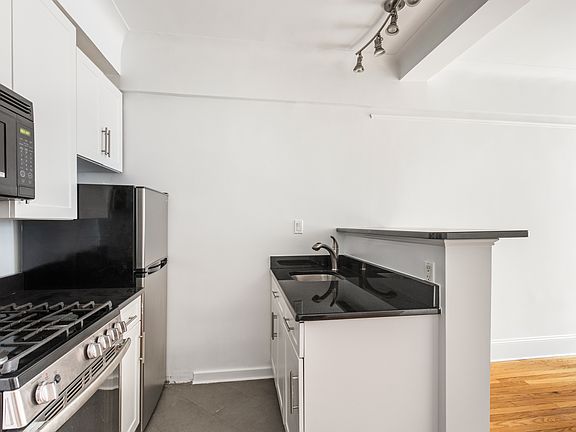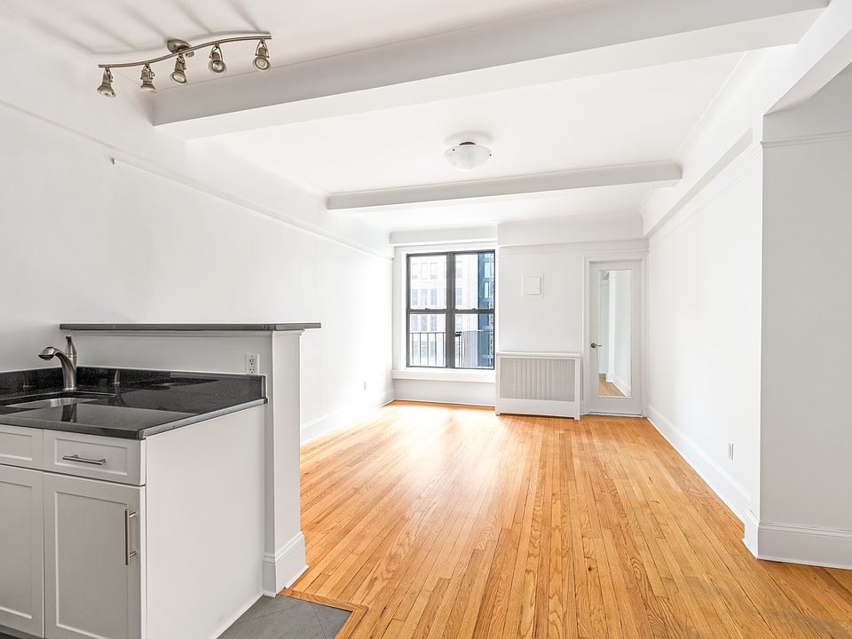 Renovated studio facing South. The kitchen has been renovated with stainless steel appliances, white shaker cabinetry and granite counters. There are refinished oak hardwood floors throughout, South facing windows and a walk-in closet. 440 West 34th Street is classic prewar elevator building, featuring an on-site superintendent and laundry room. Doorman/Attended Lobby; Sunday - Thursday 6:00AM - 11:15PM & Friday - Saturday 8:00AM - 12:15AM. All other times the building is serviced by the ButterflyMX Intercom System. Pet friendly (one cat or one dog 35lbs. $50 monthly pet fee). Located in the Hudson Yards neighborhood, which is convenient to the A/C/E, 1/2/3 & 7 trains. Penn Station is less than 2 blocks away. Whole Foods, Hudson Yard Mall, Brooklyn Fare & Ideal Market grocery store are located within the neighborhood, as is the Hudson River Greenway, High Line and many wonderful coffee shops and restaurants. U.S. Guarantors & The Guarantors Accepted