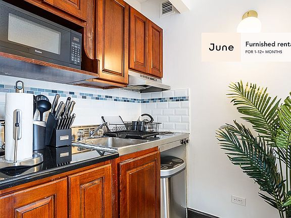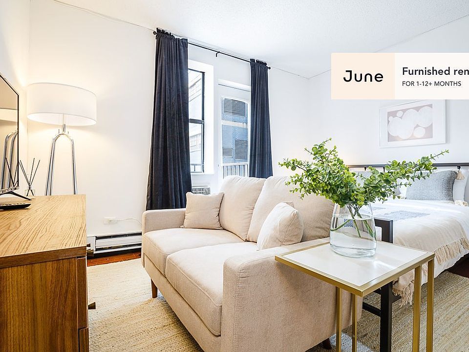 Furnished. Month to month available.Live with June Homes This unit can be rented deposit free. Pay a small monthly fee to Rhino, and never pay security deposit again. Please ask June Homes for more information about Rhino. About June Homes Here at June Homes we understand that the cost of real estate can start to hinder on our simple yet crucial facets of life. A home should be safe, comfortable, well appointed, be a breeding ground of dreams and imaginations, and not be located in an unfavorable area. We've spent months crafting what we consider the optimal sanctuary to unwind, create memories, and to surmount our next endeavours in. June Homes is a membership based living brand that provides fully furnished properties in some of the most desirable areas. We don't believe that you should only get a hotel experience while away, so we provide hotel-like services as well as amenities found in many luxury hotel brands in all of our properties. No broker fees, no sign-up costs, and no questionable roommates all at an economical rate in your city's hotspots. Just turn up with your suitcase and call us home. *Our prices are calculated dynamically and the price shown is the best price for specific stay durations. Please contact us for more details. #151: Times Square Studio (Queen) 7G