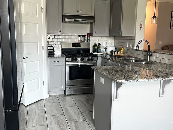 Modern Kitchen Complete with stainless steel appliances, ample cabinet space, and a large breakfast bar.