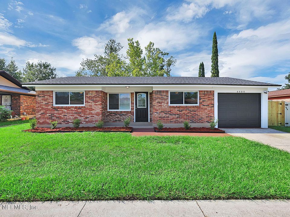 Welcome to this beautifully renovated brick home in the heart of Jacksonville! Featuring 3 spacious bedrooms, 2 modern bathrooms, and a sleek open-concept design, this home is move-in ready. Enjoy the bright living space with new flooring, recessed lighting, and a stylish kitchen boasting quartz countertops, stainless steel appliances, and a designer backsplash. The sliding glass doors open to a private, fully fenced backyard—perfect for gatherings or quiet evenings outdoors. With a brand-new roof, updated finishes throughout, and a convenient location near schools, shopping, and dining, this home blends comfort, style, and peace of mind. Don't miss your chance to make it yours!