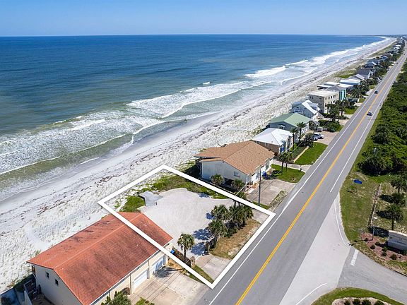 Sunrise dreams and endless ocean views … This oceanfront lot in North Beach sits high on the dune and offers 77’ of St. Augustine waterfront paradise with 180 degrees of stunning views. Already improved with a sturdy seawall, stairs to the beach & circular driveway (no backing out onto Coastal Highway), this rare offering is one of the few properties in an area protected by a 50-year guaranteed beach renourishment project by the Army Corp of Engineers. The seawall & stairs are covered by a sand dune created by the recent renourishment. Very important to note is that the adjacent properties also have the seawall. The perimeter of the property is marked by a gorgeous, irreplaceable coquina rock wall. Impact fees for the development of this property have already been paid by the home that previously occupied this lot. The owner demolished the home because renovation would cost more than the structure's value. Per the St. Johns County Building Department, the setbacks are 25’ front, 8’ sides, 10’ from the seawall and 35’ height. Utilizing the grandfathered building pad would allow for a home closer to the seawall.