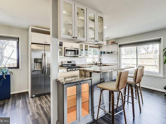 Welcome home! This midcentury-modern inspired home boasts gorgeous contemporary updates and an abundance of natural light on all three levels! As you step inside, you’ll be greeted by the light-filled living room, featuring a wide picture window, gleaming hardwood floors, and a striking vaulted ceiling. Step upstairs, where custom retro-inspired railings bring a unique touch of vintage charm and lead you into the gorgeously renovated eat-in kitchen (2017). It boasts exquisite updates, including abundant two-tone cabinets, sleek granite countertops, and stainless steel appliances. Pull up a stool at the island bar or host a dinner party in the spacious dining area. With the adjacent cozy sitting area, this open and expansive floorplan is ideal for entertaining friends and family! Modern luxury vinyl plank flooring (2020) leads you down the hallway to the primary bedroom suite, which offers generous closet space. The updated en suite bathroom features a handsome wide vanity and tastefully tiled step-in shower. Both additional bedrooms on this level include wide closets and shared access to the second stylish bathroom in the hall. On the top level, the fourth bedroom offers a private and versatile bonus space with a dramatic vaulted ceiling, beautiful hardwood floors, and large windows that flood the space with natural light. Step outside from the kitchen to your private patio and enjoy your peaceful fenced backyard with professional landscaping (2023). On the front of the home, the two-car garage features new garage doors and epoxy flooring (2023). Along with the wide herringbone paver driveway (2023), you’ll have plenty of storage space and parking for you and your guests. Additional major updates to the home include a new roof (2022), insulation (2023), and HVAC (2013 outside unit, 2018 inside unit). Amenities in this lovely, established neighborhood include a playground, basketball courts, common green space and trails, plus annual picnics and community yard sales. Conveniently located just minutes to Giant, Wegmans, Kingstowne Towne Center, Springfield Town Center, Huntley Meadows Park, Lee District Recreation Center, and Fort Belvoir. Quick access to the Fairfax Connector bus, Huntington and Franconia-Springfield Metro stations, I-95, I-495, Route 1, Telegraph Road, and GW Parkway for easy commuting and getting around the DMV. Schedule a private tour of your beautiful new home today!