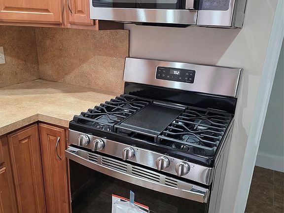 Fenced yardPartially finished basementNew carpetingCovered porchTwo-car garageGabled roofButcher block countertop