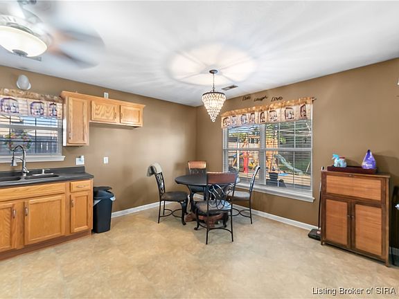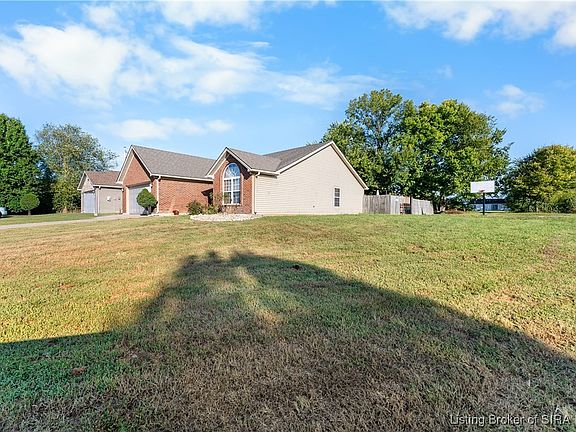 Welcome to 4400 Leaf Circle, a charming 3-bedroom, 2-full-bathroom home in Sellersburg, Indiana, just a 20-minute drive from vibrant Louisville, KY. Built in 2005 and spanning 1,303 square feet, this single-family residence is priced to sell, offering incredible value on a generous 0.31-acre corner lot. Step inside to soaring vaulted ceilings that enhance the open and inviting living spaces, perfect for everyday living or entertaining guests. The master bedroom serves as a private retreat, complete with a spacious walk-in closet for all your storage needs. Outside, the property shines with family-friendly features, including a dedicated basketball court with a premium Gorilla Goal for endless hours of fun and fitness. A well-designed pool deck awaits your above-ground pool, creating the ultimate backyard oasis for summer relaxation and gatherings, all within a fully fenced-in backyard. The attached 2-car garage provides convenient parking and extra storage, while the corner lot offers added curb appeal. Perfectly situated near top-rated Silver Creek Schools and the Clark County Airport, this home provides easy access to education, travel, and local amenities in a growing community, with the added convenience of being just 20 minutes from Louisville's dining, entertainment, and job opportunities. Priced to sell, 4400 Leaf Circle is a rare opportunity to own a home with exceptional features and lifestyle potential?schedule your viewing today! Sq ft & rm sz approx