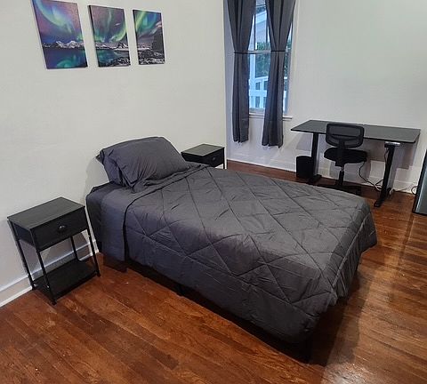 Private bedroom with electronic key code access. Fully furnished with brand new furnishings. All utilities included. Shared kitchen, living space and baths. No smoking, no pets, no drugs. Tenants responsible to clean up after selves.