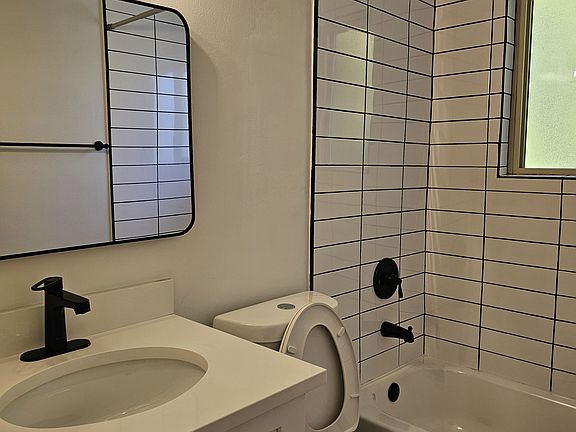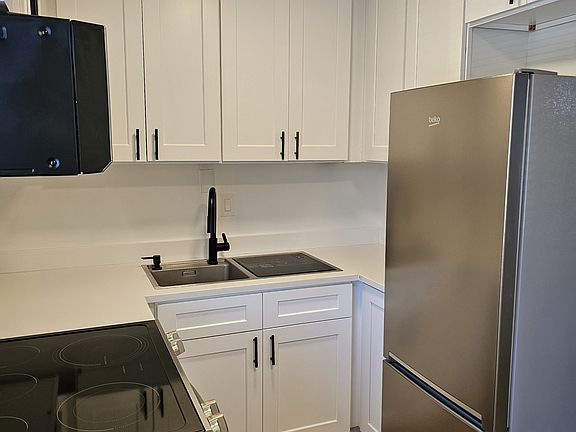 Stylish fixturesModern kitchenetteLarge windowsUpdated bathroomSleek cabinetryNew countertopsBright and open layout