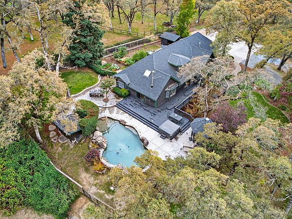 Welcome to 4400 Miller Oak Dr your private country retreat in the heart of Auburn. Set on five flat, usable acres shaded by majestic oak trees, this exceptional property offers the perfect blend of comfort, recreation, and rural charm. The 4-bedroom, 3-bath home lives like a single story, with a spacious bonus room upstairs featuring the fourth bedroom and a dedicated office are ideal for guests, teens, or working from home. Outdoors, enjoy a sparkling salt water pool and hot tub, plus outdoor kitchen and fire pit. Step beyond the cross fenced backyard to your own par three golf tee box overlooking the pond. Equestrian amenities include a spacious fenced pasture with a two-stall run-in shelter with stall mats for great footing. A matching shelter outside the fenced area offers convenient equipment or feed storage. The charming chicken coop with water and power add to the property's versatility, while the flat acreage offers endless possibilities for gardening, animals, or an ADU. The pond on the property boasts its own ecosystem with year round interest and is fed by NID irrigation water. Located in a quiet, sought-after neighborhood, the property also provides nearby access to local walking and horse trails, making it easy to enjoy the natural beauty of the surroundings.