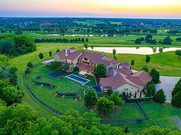 Experience the pinnacle of luxury living in this ultra-exclusive gated estate overlooking the Gaillardia Golf Course. This secluded property offers unparalleled privacy and stunning golf and water views. The home is accessed through a gated entrance and a scenic, tree-lined driveway, leading to a residence designed by architect Rick Brown. Outdoor kitchen with a pizza oven, and expansive living spaces perfect for entertaining. Living room boasts 23-foot ceilings, a grand stone fireplace, two-story windows with electric shades, and glass railings on the second level. The gourmet kitchen is equipped with a 60" Wolf range, three full ovens, multiple appliances, and extensive counter space, including three islands and a butlers pantry and a very cool glass wall wine cellar! The primary suite offers convenient access to a two-car garage, his and her separate primary baths with an adjoining shower, and separate closets, including a concrete safe room. Outdoor amenities include multiple living spaces, a swimming pool, a fire pit, and picturesque views of the surrounding trees, creeks, and wildlife. The property also features a large glass walled gym with special flooring, wet bar and balcony, library/study off the primary suite with beautiful paneling and a fireplace. ELEVATOR and over 1,000 square feet of unfinished space for future expansion. Enjoy the perfect blend of country living and city convenience, with close proximity to OKC, highways, and Edmond. Golf cart access to the country club and golf course, along with the estate's serene setting.