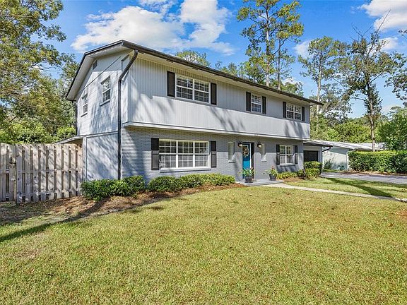 Nestled in the highly desirable Suburban Heights neighborhood, this meticulously maintained two-story brick home is the perfect blend of comfort, functionality, and style. From the moment you step inside, you’ll appreciate the attention to detail and thoughtful updates throughout. The first floor features a versatile fifth bedroom or office, along with a convenient half bath. The living and dining room combination flows seamlessly, creating an inviting space for everyday living and entertaining. The remodeled kitchen is a true centerpiece, offering modern finishes and an efficient layout. Upstairs, you’ll find four spacious bedrooms and two beautifully remodeled baths. Three of the bedrooms include expansive walk-in closets, and the primary suite boasts its own ensuite bath for comfort and everyday ease. Additional highlights include an indoor laundry room with sink, and the absence of carpet throughout the home, with beautiful oak floors upstairs and wood-looking tile downstairs. The true WOW FACTOR lies in the outdoor living space. A huge covered patio easily accommodates both dining and seating areas, overlooking a sparkling pool and plenty of yard space with mature landscaping. The fully fenced yard provides both beauty and a sense of retreat, making it ideal for relaxation or entertaining. Conveniently located near HCA North Florida Hospital, the University of Florida, Shands, as well as grocery stores, shopping, and dining, this home offers both tranquility and accessibility. This Suburban Heights gem is the perfect place to call home.