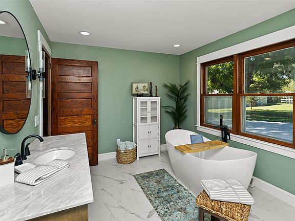 This acreage blends historic charm and modern amenities on 2.7 acres in town with city water and sewer. Over 2200 sq. ft. of living space! The main floor offers a stunning new kitchen with stainless steel appliances, gas stove with pot filler, granite countertops, and custom cabinetry. A new butler’s pantry adds a 2nd refrigerator, prep sink, tile floor, and extra storage. The spa like main-floor bath includes a soaker tub, tiled shower with glass doors. The spacious dining room, sitting area and living room are open and welcoming. The 2nd floor has 3 bedrooms, another full bathroom and laundry room. The 3rd floor attic features custom beams, remote ceiling fan, and mini split. Vaulted ceilings make this space perfect for so many things! All hardwood floors have been professionally refinished and original woodwork has been beautifully restored. The original windows have been refurbished to protect the integrity of this beautiful home. All new lighting and fresh paint throughout. All 3 bedrooms have remote ceiling fans. New electric panel, new AC, new plumbing. Enjoy new front and back decks, restored porches, new landscaping, and a freshly rocked circle drive with light pole. Small horse barn with new roof and siding, garage with new concrete approach, and fruit trees (peach, pear, and apple). Country living with easy access to shopping, schools and major roadways.
