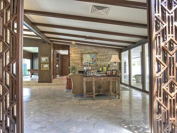 Large Family home on 2 acres surrounded by golf course. Designed by famed architect Wyatt Hedrick, protege of Frank Lloyd Wright, who designed another home on this same street.