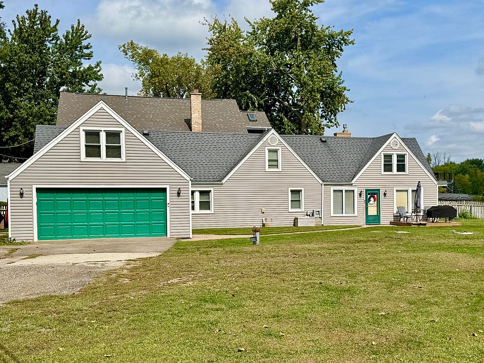 Waterfront Living at Its Best! This beautifully updated 3-bedroom, 2.5-bath home sits on a rare, level, double lot with 80 feet of direct river frontage-perfect for waterskiing, boating, kayaking, paddle boarding, and fishing right from your backyard! Deep water pier to handle all your toys! Embrace the outdoors year-round with abundant wildlife sightings and snowmobiling adventures in the winter. Sit around the fire pit on those star filled nights, and get cozy by the fireplace on cold winter evenings. Step inside to a light and airy coastal cottage-inspired interior, featuring new luxury vinyl plank flooring, fresh finishes, and newer stainless steel appliances in the open-concept kitchen. The spacious layout includes plenty of room for entertaining, relaxing, or soaking in the tranquil water views. You'll love the attached 2-car garage, ample parking, and the convenience of being in a golf cart-friendly neighborhood. You'll have peace of mind with the new septic (installed 2023). Whether you're looking for a serene getaway or a full-time riverfront lifestyle, this property delivers it all. It's not just a home, it's a lifestyle. Don't miss your chance to own this rare slice of riverfront paradise!