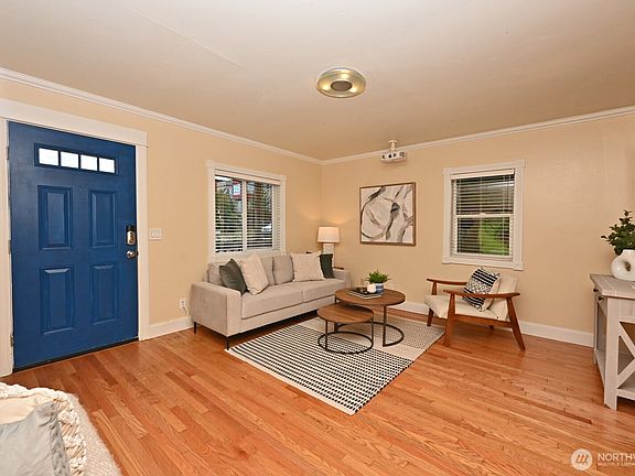 This remodeled home features a cook’s kitchen with stainless steel appliances, Quartz countertops, and subway tile backsplash. From the kitchen the back door opens to an entertainment-size deck. The main floor has gleaming oak hardwoods throughout, crown molding, and fresh paint. Two nice size bedrooms and full bath complete this level. Fully finished basement features a garage, large family room, full bath, and laundry. Driveway parking. Large level 6,450 sq ft lot borders park & offers space for a DADU/cottage with separate access or explore added units under the new zoning updates. Quick access to I-90, light rail, and downtown. Bring your contractor and vision; renovate, add, or develop. Buyer to verify all development potential.