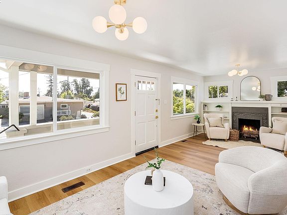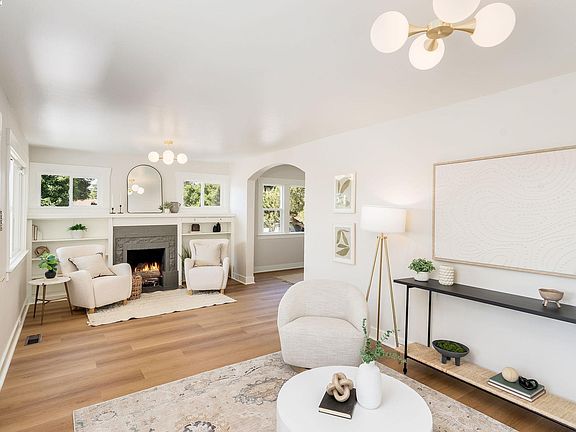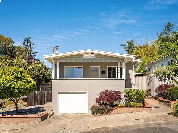 This charming vintage Maxwell Park home has been beautifully updated with contemporary finishes in keeping with the original Craftsman aesthetic. Built in 1924, the home has wonderful curb appeal and features 2BR, 1BA, traditional living and dining rooms, a newly remodeled eat-in kitchen, a laundry area + a large basement for storage and/or potential home square footage expansion. Updated features include dual-pane windows, SPC flooring, stylish new light fixtures throughout, fresh interior/exterior paint, a new electric subpanel and much more. The attractive kitchen and breakfast nook includes new SS appliances, a subway tile backsplash over quartz counters, and plenty of cabinetry. The large, prominent corner lot and backyard include a mature lawn, roses, lavender, citrus trees + multiple patios and garden beds. A backyard shed, complete with electricity, offers many flexible uses/possibilities. Situated on a tree-shaded block with picturesque homes from the same era, the location is close to Laurel District and Fruitvale Ave shopping, and the open space, pre-school, trails and amenities offered by Mills College/Northeastern U. Easy access to freeways, Grand/Lake, BART, OAK. Must see!