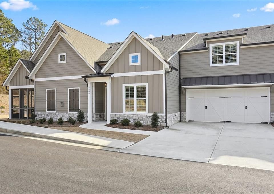 The best things are yet to come. MOVE-IN READY! >>>>>>>>> Incredible opportunity awaits in a premier Acworth location, only minutes to Lake Allatoona, Cobblestone Golf Club, Acworth Beach, and North Cobb Senior Center. Westside Farm at Cobblestone is a boutique Active Adult Community with the area’s best shopping and dining at your fingertips. >>>>>>>>>> The former model, this home is beautifully designed and upgraded featuring single-level living, wide-plank hardwood floors throughout the main level, 10’ ceilings with cedar beams, generous trim package with crown molding, wainscoting in the dining and entry, shiplap fireplace and custom bench with cubbies in the mudroom. >>>>>>>>>> You’re instantly greeted by a warm and open floor plan centered by the heart of the home- the kitchen where gatherings can be enjoyed. Taste meets functionality with an oversized quartz-topped island with a deep cast iron farm sink and trash pullouts, generous cabinets and workspace, herringbone tile, pot filler, stainless gas Kitchen Aid appliances and vent hood. >>>>>>>>>> The fireside family room is flanked by custom cedar floating shelves and built-ins with quartz and you’ll never be missing from the action. Massive sliding doors open to the screened-in porch where you can enjoy fresh air year round and you have direct access to the massive yard. This plan also features the largest dining room, able to comfortably seat 8+. >>>>>>>>>> Two bedrooms on the main level and a third upstairs. Primary on main is beautiful and bright featuring a spa-like bathroom with dual sinks, a walk-in shower with dual heads including an overhead rain shower with direct access to your walk-in closet and to the laundry. The upstairs suite makes is a wonderful retreat for homeowners and guests alike. >>>>>>>>>> Storage Abounds- oversized walk-in pantry, large walk-in primary closet and plenty of coat and linen closets. There is also very accessible storage in the attic portions of the upstairs. >>>>>>>>>> Additional upgrades include: Custom motorized draperies, plantation shutters throughout, under cabinet task lighting, custom shelving and epoxy floor in the garage, custom cabinets in the laundry, 8” flush mount speakers and HEOS streaming music amp in the kitchen and porch, designer lighting throughout, custom ELFA closets.The home was completed in 2021. >>>>>>>>>> $5,000 buyer bonus for closing costs or rate-buy down.