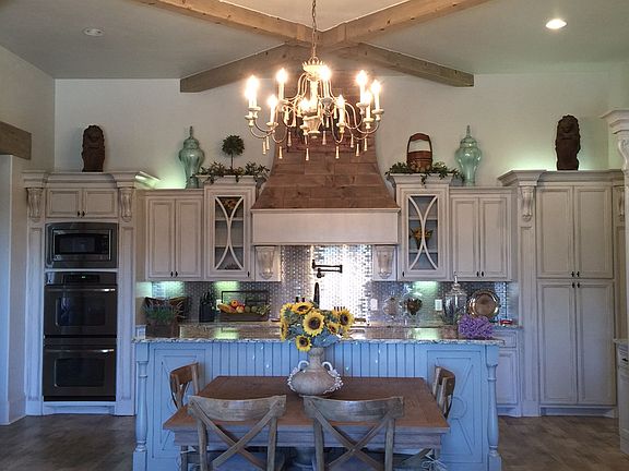 This French Country home features: Custom "Open" Island Kitchen, Formal Dining, Exceptional Laundry/Utility Room, Granite Counters, Beamed Ceilings in Living Room & Kitchen, Isolated Master, Mud Room, Stone Fireplace, Large Covered Patio with Outdoor Kitchen, Spray Foam Insulation, Artificial Turf in Front & Back and custom draperies throughout the home.