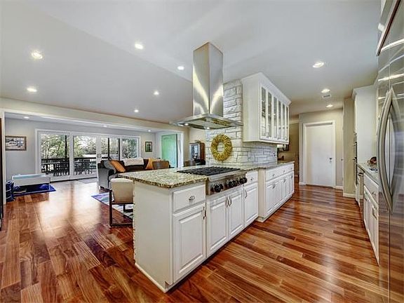 Lovely remodel on desirable Balcones Dr. 4 Bed, 3 Bath, hardwoods and travertine floors, kitchen features granite countertops and stainless steel appliances, the master suite includes a walk-in shower and soaking tub, built-in desk and murphy bed in spare bedroom, refinished deck overlooking the incredible backyard... recently installed privacy fence.