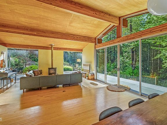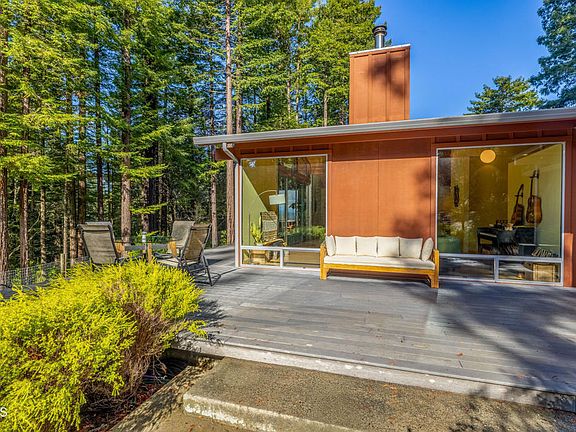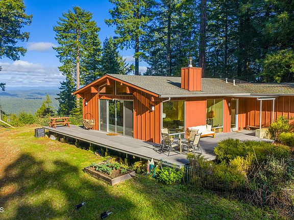 Designed by noted coastal architect Diana Wiedemann as a nod to Eichler, this mid-century modern residence offers timeless design, privacy, and panoramic views across 14 acres of pristine Mendocino County landscape. Perched above redwood-covered ridgelines and fog-draped valleys, the home captures the essence of Northern California living with its clean lines, open floor plan, and magnificent walls of glass that frame the forest from every angle. Built in 2007 and meticulously maintained, the 3-bedroom, 2-bath home is just over 2,000 sq ft and lives light, airy, and seamlessly connected to nature. The primary ensuite is a true retreat with floor-to-ceiling windows, a spa-like soaking tub overlooking the redwoods, and a generous walk-in closet. A spacious wraparound kitchen flows into the dining area, making nature the focal point of daily living and entertaining. Extra-wide hallways and flexible bedroom spaces support a comfortable live-work lifestyle, enhanced by high-speed internet. Multiple wraparound decks invite sunrise light and golden coastal evenings. On the west-facing deck, a perfectly placed hot tub offers unmatched opportunities for sunset soaking and stargazing.The land itself is exceptional. Over one mile of hand-carved hiking trails wind through pygmy forest, circular cathedral redwood groves, and seasonal displays of native flora--rhododendrons, huckleberries, and an abundance of mushroom varieties including boletes and prized Mendocino chanterelles. Raised garden beds and a storage shed complete the outdoor living experience.Several locations on the property offer excellent potential for a secondary residence, all positioned outside the coastal zone with underground utilities conveniently available.Just minutes from the charming coastal village of Elk, known for its Michelin-star dining, boutique spa, and mom-and-pop markets. Mendocino lies 15 minutes north, with breathtaking beaches and iconic coves lining the drive. A rare and inspiring blend of architecture, acreage, and natural beauty--4401 Cameron Road is mid-century coastal living at its finest.