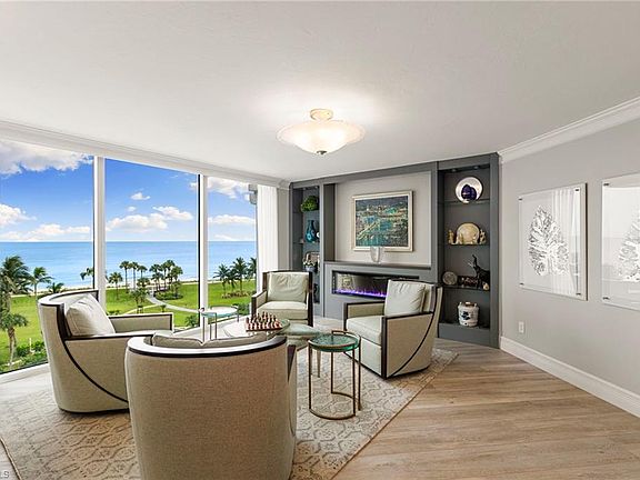Perched on the ideal 6th floor of a beautifully renovated Park Shore high-rise, this residence delivers the panoramic Gulf views from EVERY room with endless water and sunset views. Thoughtfully redesigned with a complete renovation, this 3-bedroom beachfront home offers three private bedroom suites, plus an open layout ideal for entertaining with endless views of the gulf. The kitchen features a custom built-in island and flows into a bright great room with an electric fireplace. Ample storage, custom built-ins, and extra storage closets make it just as practical for seasonal living as it is for year-round residence which is a rare find in Naples beachfront condos. Hurricane-impact windows, electric shutters, and secure building access provide peace of mind. Outside, enjoy resort-style amenities including a sparkling beachfront pool and spa, an outdoor grill area with a covered area to meet your neighbors for Friday night pizza. Lush green space, tennis courts, a fitness center, and direct private beach access with an outdoor shower nearby. This unit also comes with one assigned garage space for the utmost of convenience. Whether you’re seeking a luxury retreat, a legacy property for family gatherings, or a place to call home year-round, this residence captures the very best of the Naples beachfront lifestyle. This building did NOT have any damage from Hurricane Ian - only the parking garage first floor was flooded during the storm.