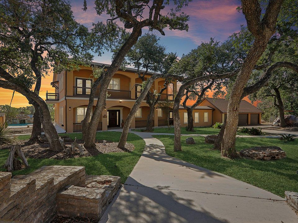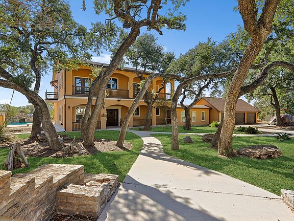 A rare gem boasting just over 5 acres of rural relaxation. The entrance to the property reveals a stunning two-story home with ample mature trees. Both levels of the home showcase covered patios to relax and enjoy the outdoors. Inside, the floorplan unfolds with the kitchen and living room just past the foyer. The kitchen is a chef's dream with ample counter space and cabinet space. The downstairs bedroom features an en-suite bathroom creating the ideal set up for a private retreat or for a guest bedroom. Upstairs, the primary suite has space to bring your vision to life with ample room for large furniture or a sitting area. The primary bedroom also includes access to the upstairs balcony and the spacious en-suite bathroom. The primary bathroom boasts separate vanities, a walk-in shower and a claw-foot tub for a spa-like experience. The backyard hosts a true Texas oasis complete with a Texas shaped in-ground pool and spa, a dedicated outdoor kitchen and covered space to lounge by the pool. Beyond the pool, a 6-car garage is the ultimate escape for projects large or small. The garage area holds room for toys of any size. A secondary slab is also ready to fit your lifestyle. The slab could be the foundation for a second home or an additional shop. Located in close proximity to downtown San Marcos, this home is the perfect rural getaway while enjoying conveniences of the city. I-35 serves as a direct route to Austin or San Antonio. Shopping, dining and entertainment are all just minutes away!