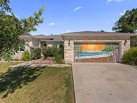 Wood floors that don’t quit, windows that flood the home with natural light, and a tray-ceiling living room anchored by a gas fireplace that commands attention — this Lago Vista home was built to bring the WOW! The open floor plan stretches out with a living area big enough for game nights, a dining room that begs for dinner parties, and a kitchen that owns the spotlight with granite counters, dazzling pendant lighting, oversized center island, and custom cabinets galore. Four bedrooms deliver flexibility for everyone — family, guests, or that home office you’ve been dreaming about — while a half bath off the living room keeps entertaining easy. The primary suite earns its retreat status with direct back-patio access and an ensuite bath that offers dual granite vanities, a garden tub, a huge modern walk-in shower, and a walk-in closet with plenty of room to keep things organized. Extras include an added front parking pad for guests, landscaped yards, and wall shelving that brings function with flair. Out front, the stone exterior and custom wood door set the tone, and out back, the extended patio is plumbed for a gas grill — translation: it’s ready for true Texas BBQs, long summer nights, and Hill Country sunsets! Location adds another layer of appeal — this home sits just 5 minutes from the shores of Lake Travis and the nearest boat ramp, making lake days effortless. Lago Vista living means perks upon perks, with access to 9 private Lake Travis waterfront parks, 4 boat ramps, 5 playgrounds, 6 pavilions, private campgrounds, 2 gyms, a fishing well, tennis, pickleball, sand volleyball, basketball courts, a marina, and hiking paths. Some amenities are optional add-ons, but the lake-life vibe is always included. Bold, flexible, and built for the way you actually live, this one delivers big lake-life energy!