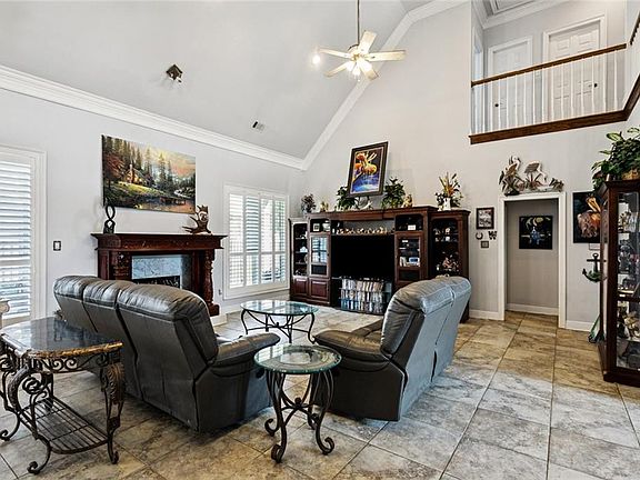 Sizable officeRear patioCorner lotMultiple walk-in closetsVast bathroomStriking kitchenSoaring ceilings