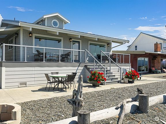 Experience the ultimate in waterfront living at Sandy Point's West Beach. This stunning single-level, 3-bedroom, 2-bathroom home was completely rebuilt in 2019, transforming an original beach cabin into a modern coastal retreat. Enjoy a spacious deck and patio perfect for outdoor entertaining, with breathtaking water views. The interior features light-filled spaces, luxury vinyl plank flooring, and sleek stainless steel appliances. A durable metal roof and striking architecture complete this masterpiece, offering a new, contemporary lifestyle on the beach. Everything is new—ready for you to enjoy! Oversized 2 car detached garage, place storage under home. Part of Sandy Point Amenities with this home, Golf, Pool, Boat Launch Ect.