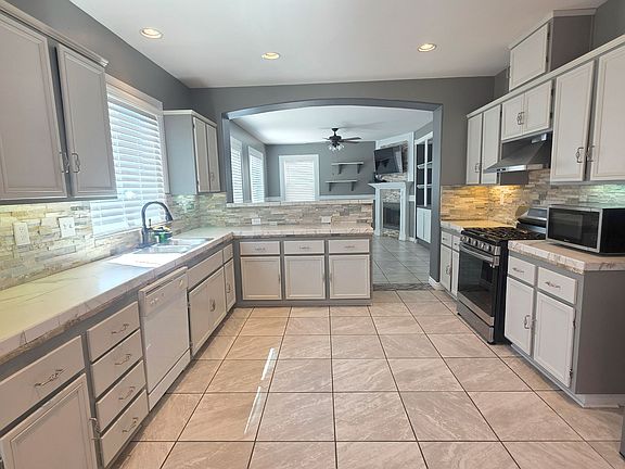 This Big and Spectacular home with freshly paint and new flooring, is situated on a Cul-de-Sac and boasts 5 bedrooms and 3 bathrooms. The floor plan features a large family sized kitchen, equipped with a convenient island and walking in pantry. Kitchen continues to an open family room, perfect for entertaining and completed with a cozy fireplace for those chilly nights. A formal dining room for special occasions has a good size, and a convenient bathroom is located in closed to the stairs. The front room deserves a different mention: ideal for office, meetings, play room or just a den, with enough space for your imagination to make the best use of it for your needs.