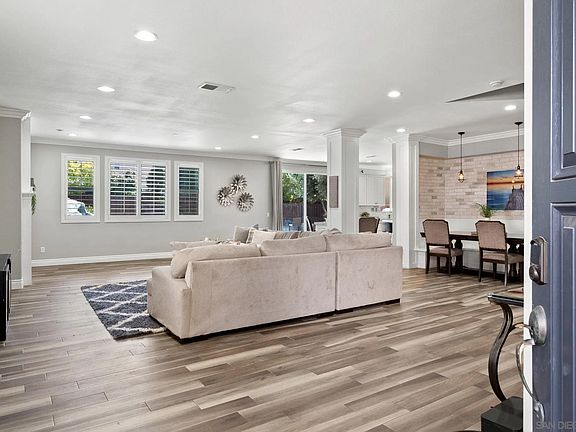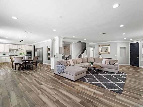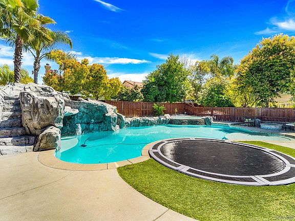 Come home to this custom, upscale designer home in the coveted Temecula Creek neighborhood. No expense has been spared with upgrades throughout, featuring a luxurious kitchen with all-wood cabinets and an oversized center island, a large walk in pantry behind the kitchen with tons of storage, a full bedroom with custom built-ins and a bathroom downstairs, a spacious family room that boasts natural light throughout and an open floor plan, a breakfast nook and separate dining area, and 5 bedrooms upstairs with a separate laundry room, and a whole-house-fan. Step outside to a backyard oasis featuring a large pool, spa, water slide, rock wall, trampoline, outdoor fire pit, and and outdoor kitchen. You won't want to leave this paradise that is perfect for families and entertainers alike. Energy costs stay low with 33 paid-off solar panels and EV hookups. This home even has an ASSUMABLE VA loan @ 2.75%. Hurry, it won't last long!