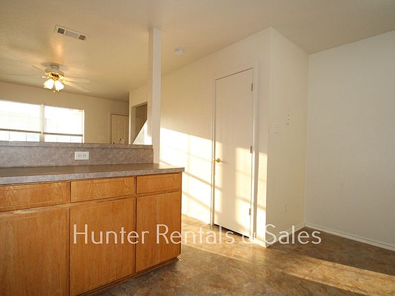 Great two-bedroom town home in south Killeen, open parking, large living room with vertical window blinds, breakfast bar at rear of living room, large storage room below stairs, kitchen with refrigerator, oven, and dishwasher, plenty of cabinet space, large laundry room, guest bathroom downstairs, two bedrooms located upstairs with full bathroom, energy efficient central air and heat, window treatments throughout, and more.