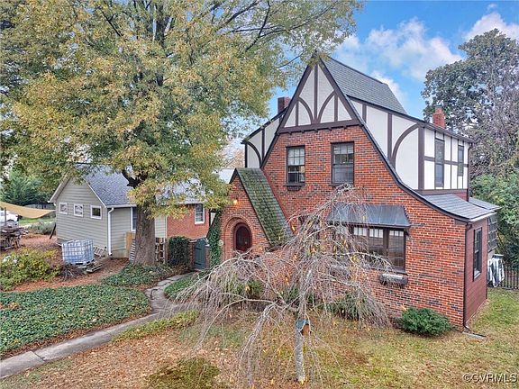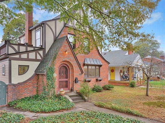 Welcome to 4402 Brook Rd, a whimsical and charming 3-bedroom, 1.5-bathroom Tudor-style cottage that captures the essence of storybook elegance. Its expansive, sweeping rooflines and timeless arched front door set the tone for this captivating home. Upon entering, you are greeted by a spacious living room featuring a wood-burning fireplace. The side porch, originally screened in, has been thoughtfully converted into a functional new space, adding approximately 190 square feet of living space, conveniently located next to the living room. The first floor also boasts an intimate, light-drenched dining room and a timeless cozy kitchen with a walk-in pantry. This level is completed by a half bathroom, a laundry room, and access to the rear porch. Throughout the home, original hardwood floors lend an enduring charm, with tile flooring in the bathrooms and side porch. Upstairs, you'll find three well-sized bedrooms and a full bathroom with a tub and shower. The primary suite is a serene retreat, offering direct access to a private rooftop porch where you can enjoy your morning coffee in peace. The property is further enhanced by an expansive, partially fenced backyard, ideal for outdoor relaxation and play. A one-car garage, currently serving as a workshop, provides ample space and could easily be restored to its original function. This home has undergone several thoughtful upgrades since 2017, including a new shingled and TPO membrane roof, Hardiplank siding on both sides of the home, new heating and cooling systems, gutters with gutter guards, and a tankless natural gas water heater—ensuring modern comfort while preserving its timeless charm.