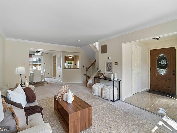 ***OFFER DEADLINE: Sunday 10/19 at 6pm*** Welcome to this exceptional end-unit townhouse featuring three beautifully finished levels and a well-thought-out outdoor space. Step inside through a beautiful lead glass front door into a bright ceramic-tile entryway, illuminated by the sun-catching window. Conveniently access the foyer closet and half bath before entering the expansive open floor plan—freshly painted, and with inviting neutral carpet throughout. Relax in the spacious living area featuring a charming bump-out with double windows or entertain in the elegant dining space adorned with chair rails, crown molding, a ceiling fan, and a sliding French door that leads to a new in 2025 deck! Love to cook? The eat-in kitchen boasts modern black stainless-steel appliances, a sleek black sink and faucet, custom tile backsplash, wood cabinetry, a generous double-door pantry, and gorgeous ceiling-to-floor windows that flood the space with natural light. Outside, enjoy your private, fully fenced yard with freshly mulched landscaping and solar garden lights. There is a shed with a new 2025 roof — perfect for gardening tools or general storage, and a lovely walkway from the deck to the gate created from large flat natural rocks. Back inside, the neutral paint and carpet flow up the steps to the second floor. There is a sunlit landing, courtesy of a generous window. Large primary suite featuring three expansive side-by-side windows, a ceiling fan, and a sizeable walk-in closet. The ensuite offers three thoughtfully designed, private spaces: a dual-sink vanity, a dedicated water closet (toilet), and a separate tub/shower area, all with ceramic tile flooring. Travel down the hall to a full bathroom, convenient linen closet, and two bedrooms—each with large windows, ceiling fans, and ample closet space. This upstairs retreat blends comfort, style, and functionality for every member of the household. From the main living area head downstairs to an inviting finished basement! Fresh neutral paint, stylish laminate flooring, plush carpet, and recessed lighting set the tone for this spacious retreat. Imagine the possibilities—a pool room, a game room, or your very own home theater—this versatile space is ready to become whatever you dream. Plus, there is a large utility/laundry room with lots of storage space. **Additional perks — NEW in 2024 Trane HVAC Unit! ** Nestled in the charming Silver Hill Farm neighborhood. Enjoy easy access to I-95, the Baltimore Beltway, and the Harbor Tunnel Thruway—making trips downtown a breeze. Plus, you’ll be just minutes from top shopping destinations and an array of local restaurants. Discover the perfect blend of convenience, comfort, and community living!