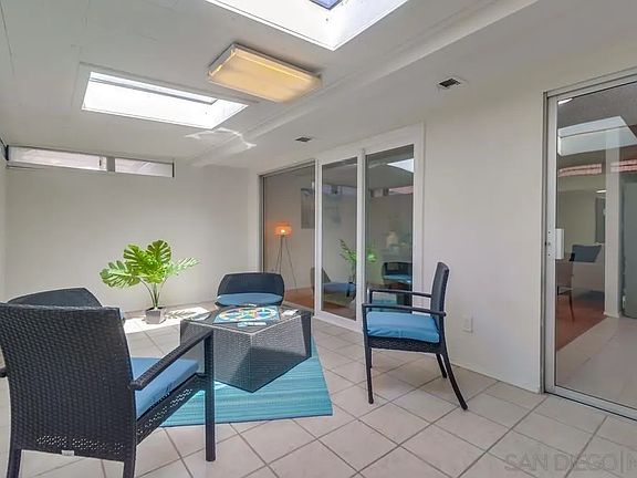 Beautifully maintained 2BR/2BA single-level home in highly desired Collwood Park community that offers a serene retreat. Enjoy a prime location within the development, set back from the road and overlooking one of the 3 private pools with scenic community views. The spacious & functional floor plan includes a desirable enclosed patio room, adding to the already spacious living area. The large primary master suite features pool views, double closets, a private bath, & new carpeting. The second bedroom also overlooks pool views, new carpeting, & convenient access to the full hall bathroom. The large living room, complete with a fireplace, flows seamlessly to the dining area, patio room, & kitchen. The kitchen shines with newly installed stainless-steel appliances & ample cabinet space, conveniently located just off the attached one-car garage. Additional permit parking spaces are available for residents. Sharing only one wall, this residence offers the privacy of a nearly detached home with all the benefits of condominium living. Highlights include a completely updated HVAC system, solar tube lighting, upgraded flooring, fresh paint, beautiful mid-century modern wood cabinets, & abundant storage. Enjoy the convenience of a private washer/dryer in the garage & a newer water heater. Collwood Park, a low-density community spanning 26 acres, offers 3 large pools (one heated year-round), two spas, a clubhouse, walking paths, & lush landscaping. This property's central location provides easy access to SDSU, freeways, shopping, dining, & the beaches.