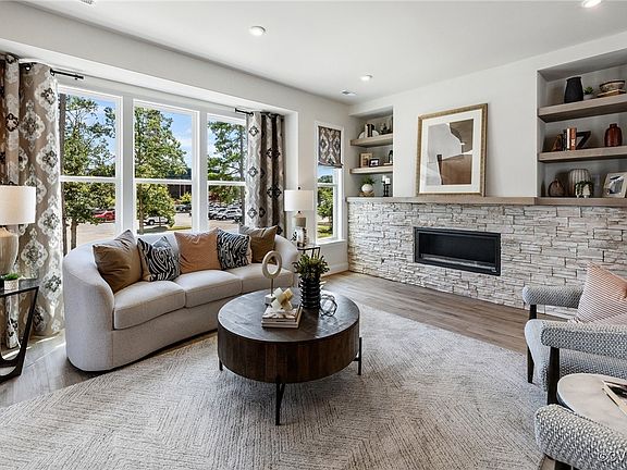 - Bedroom on Main Level, Dining Area, Double Vanity, Fireplace, Granite Counters, High Ceilings, Kitchen Island, Bath in Primary Bedroom, Pantry, Walk-In Closet(s)